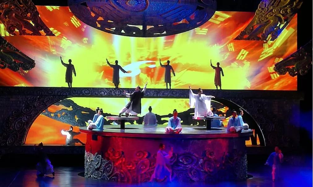 “印象·太极”剧场演出由擅长沉浸式演出的知名导演团队精心打造,将极具创新意识的体验式演出观念与传统的太极拳相结合,用国际化的视听语言将观众放送到对“太极”意向领悟的情境之中。观众将从“形”到“神”,完成对“太极”文化符号的理解与升华。